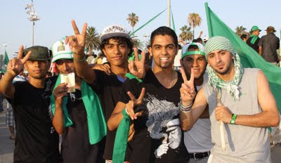 7. Heroica y desafiante Movilización popular por Gadafi en distritos de Trípoli: A pesar del terror fascista implantado por las hordas de la OTAN y dirigida por los servicios secretos CIA,M16 y DGSE, las masas patriotas seguidoras de Gadafi, que son mayoría en la ciudad de Trípoli, han desafiado a la OTAN con una manifestación popular. La gente ha caminado por el distrito popular de Abu Salim, fuertemente castigado por las ratas, las calles de Bouslim, la carretera del aeropuerto y Grawche. Los mercenarios han abierto fuego contra la gente desarmada con sus armas antiaéreas instaladas en sus camionetas en una expresión clara del tipo de régimen que desean implantar en Libia. No se tiene noticias de heridos o muertos.